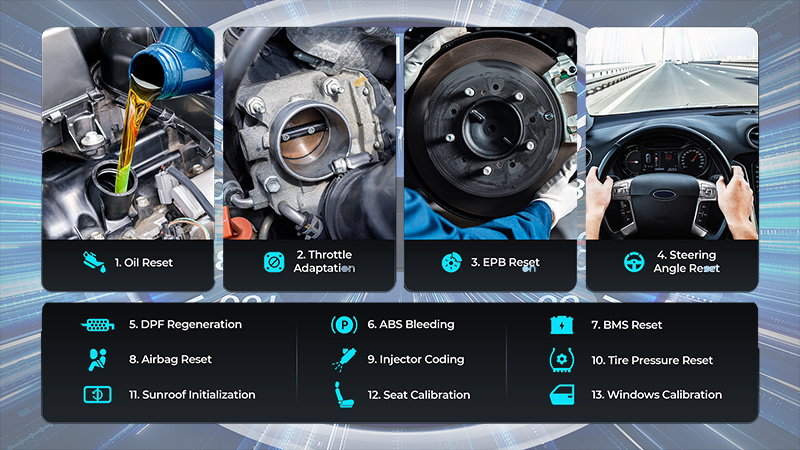 Všimli jste si kontrolky údržby? Nebojte se - naše funkce resetování oleje vám kryje záda! TopScan Pro hrdě představuje komplexní sadu 13 funkcí resetování: Reset oleje, přizpůsobení plynu, reset EPB, reset úhlu řízení a další. . Diagnostikujte své vozidlo, vyřešte výstražné kontrolky.