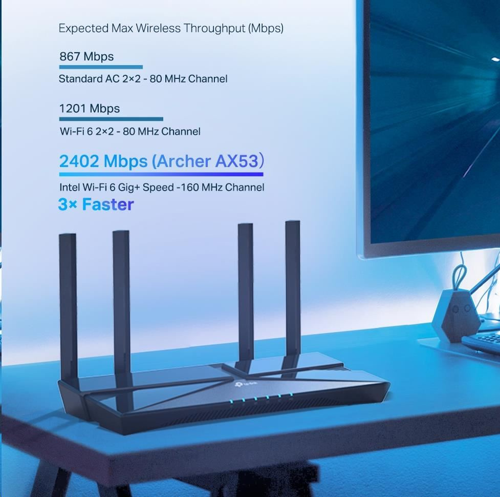 Ak už dokážete naplno využívať ponúkané rýchlosti, tak nie je dôvod otáľať s kúpou Wi-Fi 6 routeru. S šírkou pásma 160 MHz a technológiou 1024-QAM router Archer AX53 ponúka skutočné gigabitové rýchlosti až 3 Gbit/s. Doprajte si rýchlejšie streamovanie a hranie hier než kedykoľvek predtým. Tento plne vybavený gigabitový Wi-Fi 6 router je poháňaný výkonným dvojjadrovým procesorom a zabezpečuje plynulý chod aplikácií využívajúcich veľkú šírku pásma, aj keď je spustených niekoľko takýchto aplikácií súčasne.
