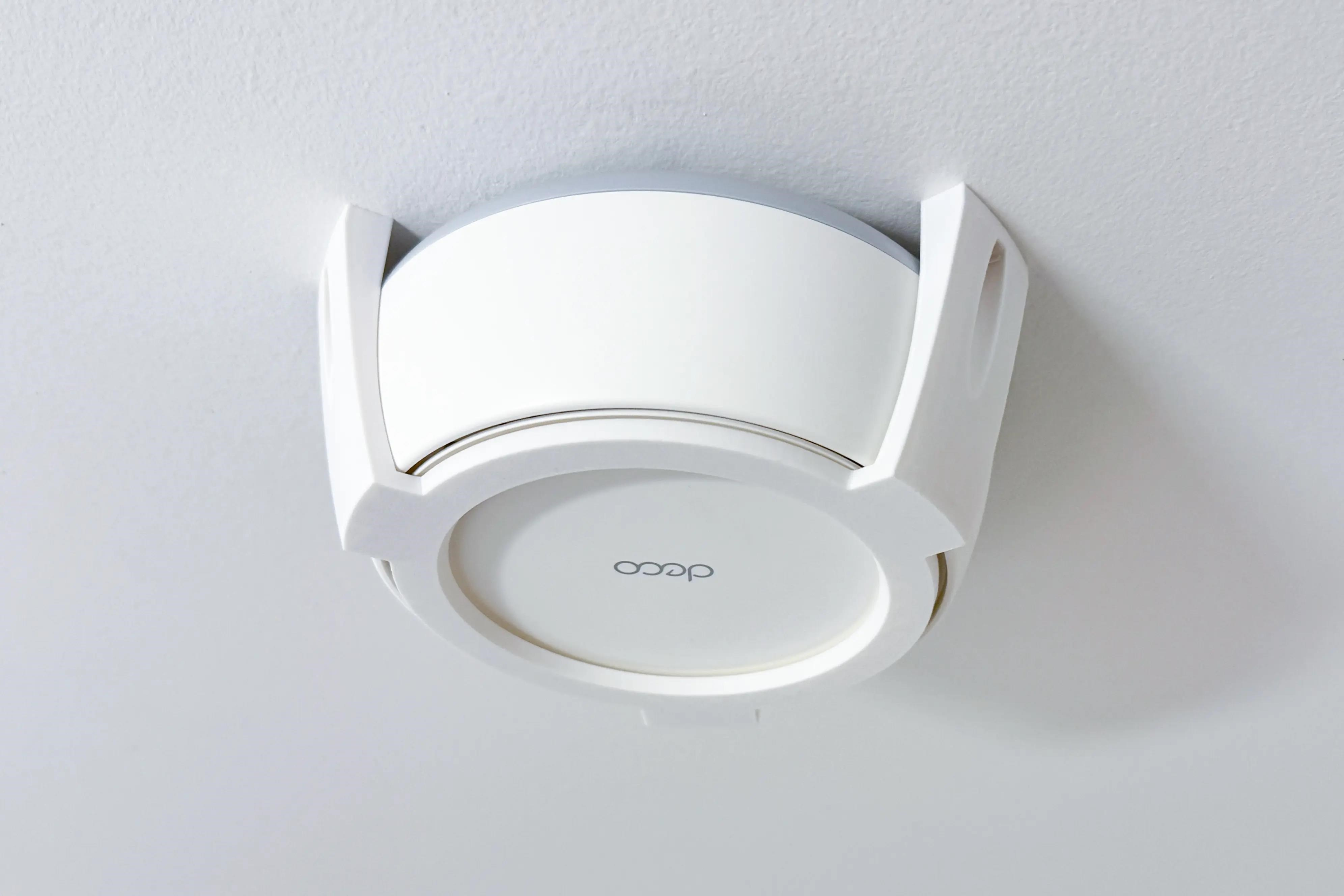 Plastový držiak na stenu a strop pre TP-Link DECO BE25 . Držiak je vyrobený z PETG materiálu na 3D tlačiarni a má bielu farbu.