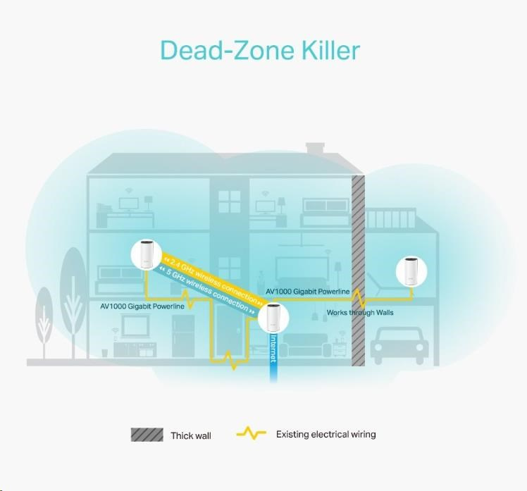 Využíva elektrické rozvody vášho domu na vytvorenie silnejších spojení medzi jednotkami Deco, čím znižuje dopad stien alebo iných prekážok na signál