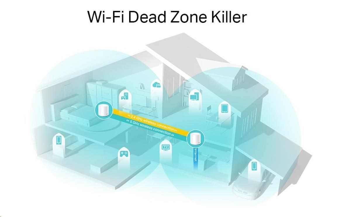 | WiFi Dosah | 4-6-izbové domy (3-pack) Tp-Link Mesh technológia Voliteľná Ethernetová spätná väzba spolupracuje na spojení jednotiek Deco pre plynulé pokrytie 2× antény (vnútorné) Viaceré antény tvoria poľvý zosilňovací rad na pokrytie viac smerov a veľkých plôch Beamforming Sústreďuje bezdrôtovú silu signálu smerom ku klientom, aby sa rozšíril WiFi dosah |
