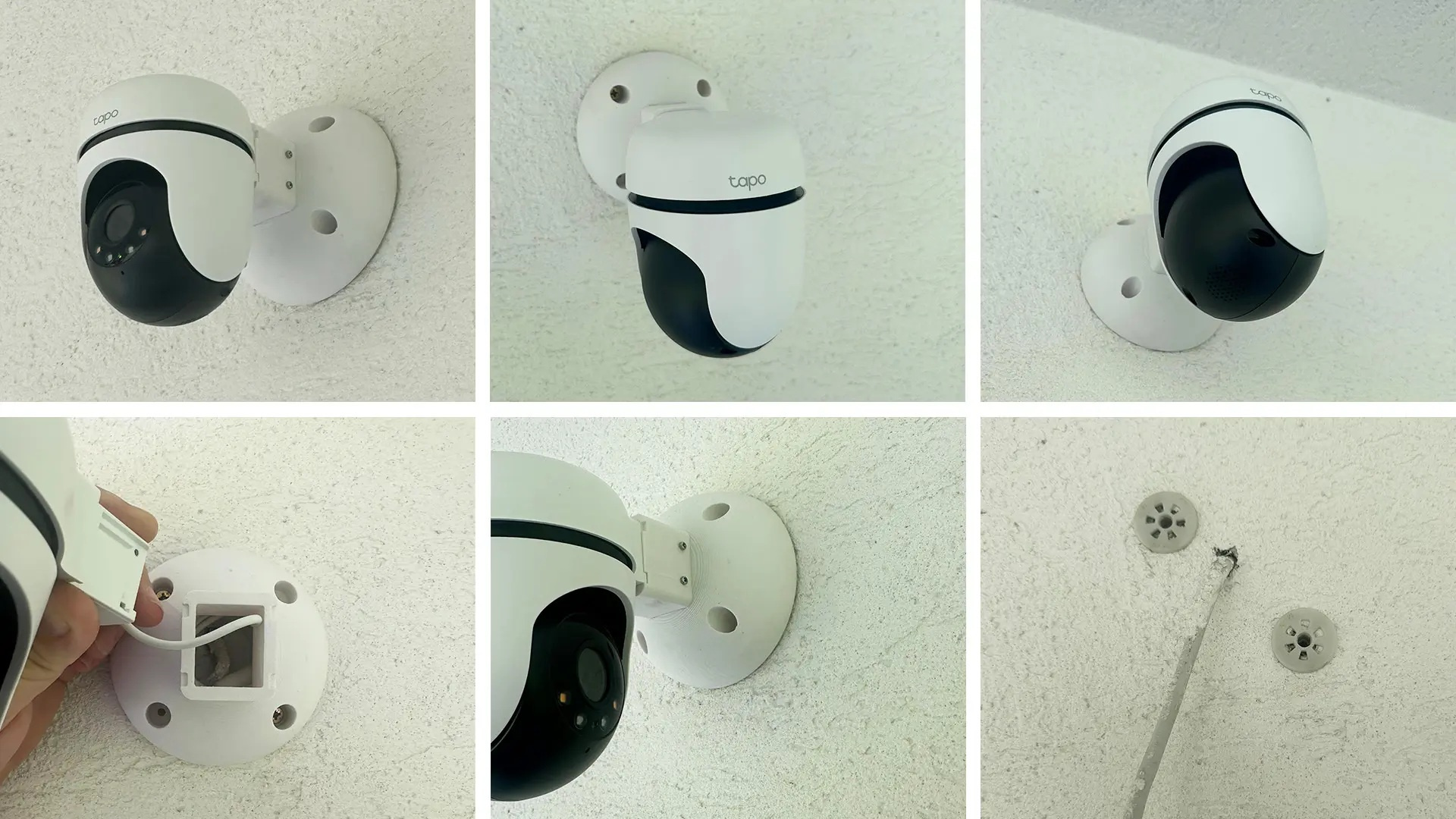 Popis TP-LINK držiak/stojan pre kamery Tapo C500/C510W/C520WS na stenu a strop, biely s krytkou káblov