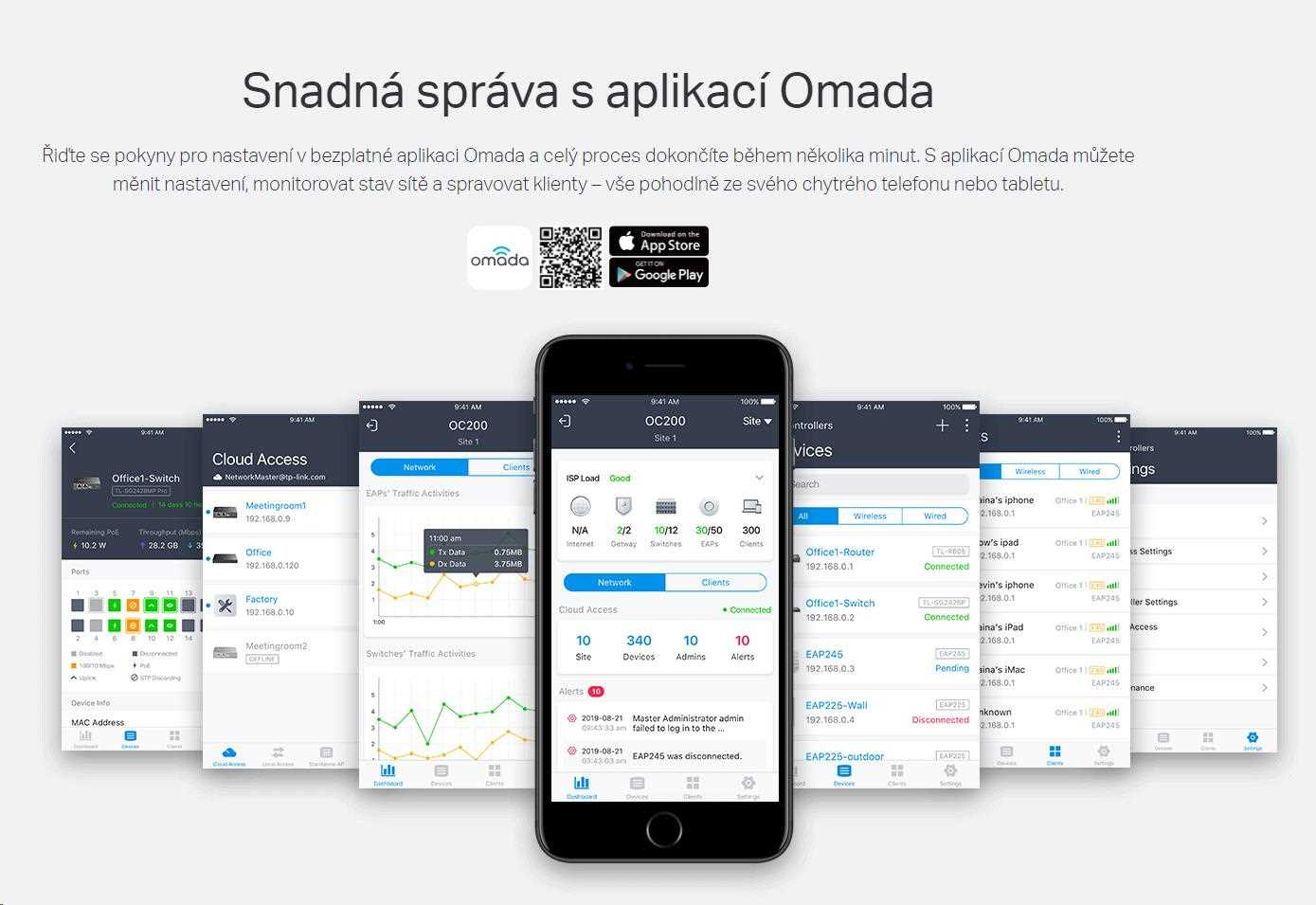| Centralizovaná správa | • Cloudový riadiaci systém Omada • Omada Hardware Controller (OC300) • Omada Hardware Controller (OC200) • Omada Software Controller |