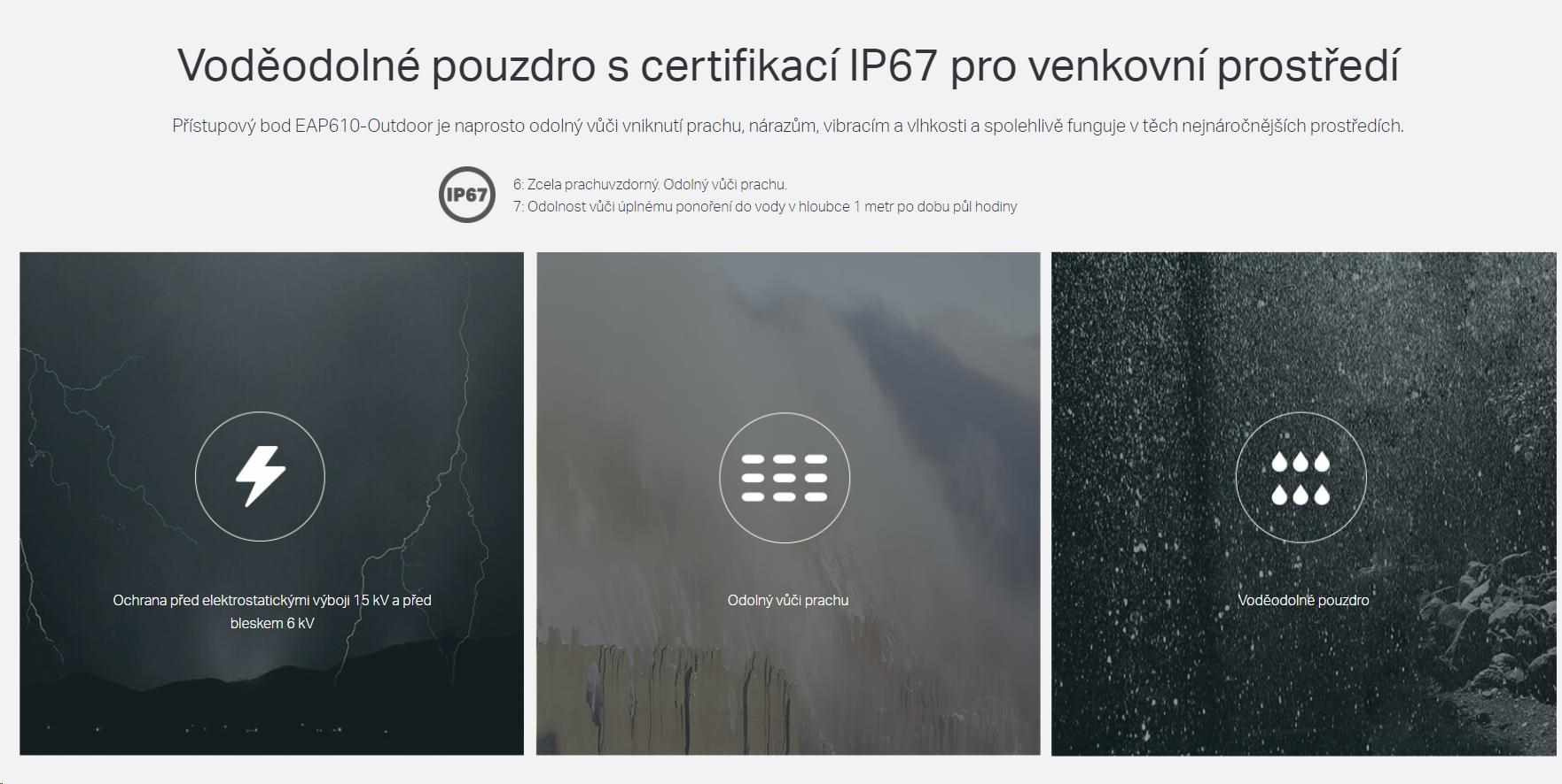 | Balenie obsahuje | • Access Point EAP610-Outdoor • Passive PoE adaptér • Napájací kábel • Montážne sety • Vodotesný set • Vodotesná anténa • Inštalačný návod |
