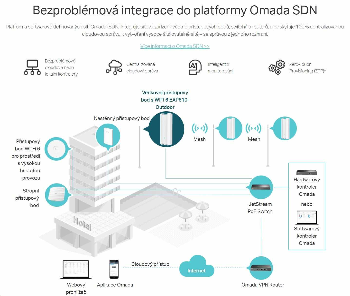 | Prístup do cloudu | Áno (cez OC300, OC200, Cloudový riadiaci systém Omada, alebo Omada Software Controller) |