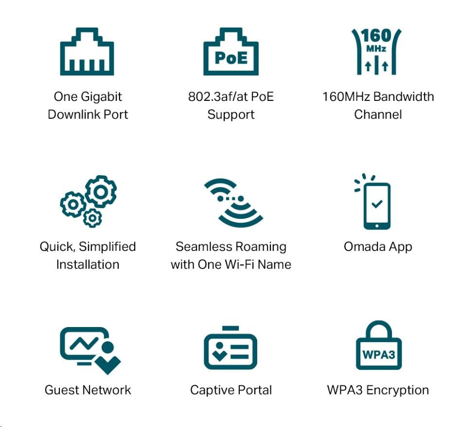 | Cloud Access | Yes. Requiring the use of OC300, OC200, Omada Cloud-Based Controller, or Omada Software Controller. |