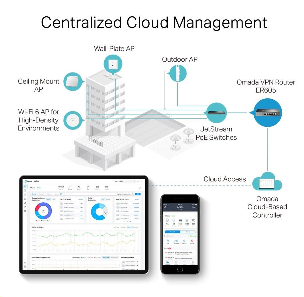 | Centralizované riadenie | • Omada Hardware Controller (OC300) • Omada Hardware Controller (OC200) • Omada Software Controller • Omada Cloud-Based Controller |