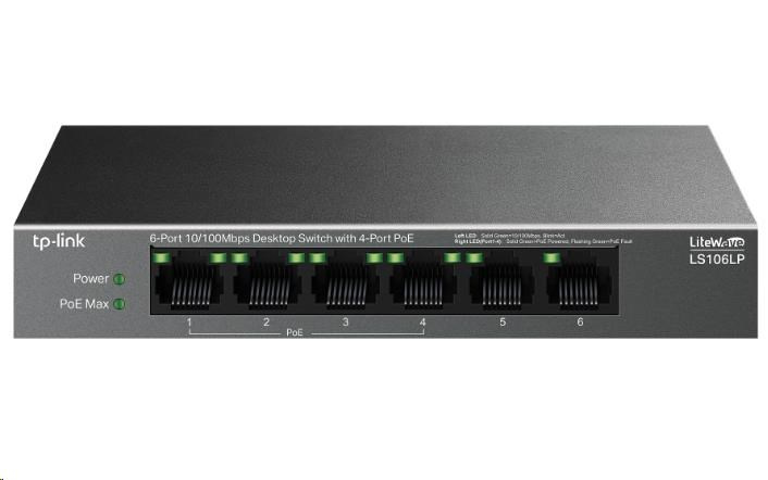TP-Link LiteWave switch LS106LP (6x100Mb/s, 4xPoE, 41W, fanless)