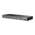 | Rozhranie | • 26× 10/100/1000 Mbps PoE+ RJ45 portov (podpora 802.3af PoE a 802.3at PoE+) • 2× Gigabit SFP sloty • Auto-Negotiation/Auto MDI/MDIX |