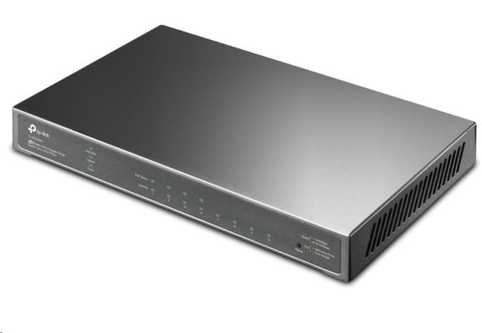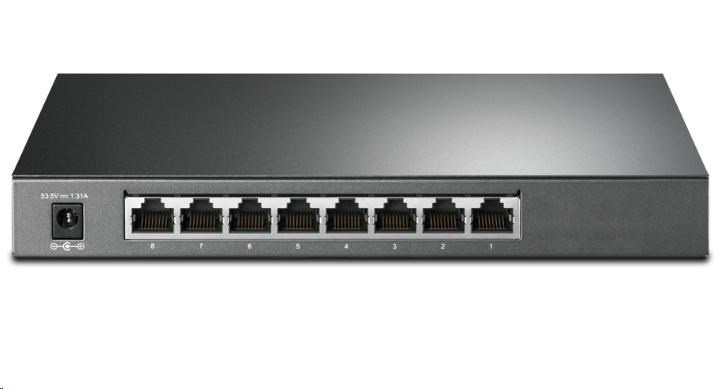 | Rozhranie | • 8× 10/100/1000 Mbps RJ45 Portov (Porty 1–4 podporujú PoE+ štandard 802.3at/af) • Automatická rokovania/Auto MDI/MDIX |
