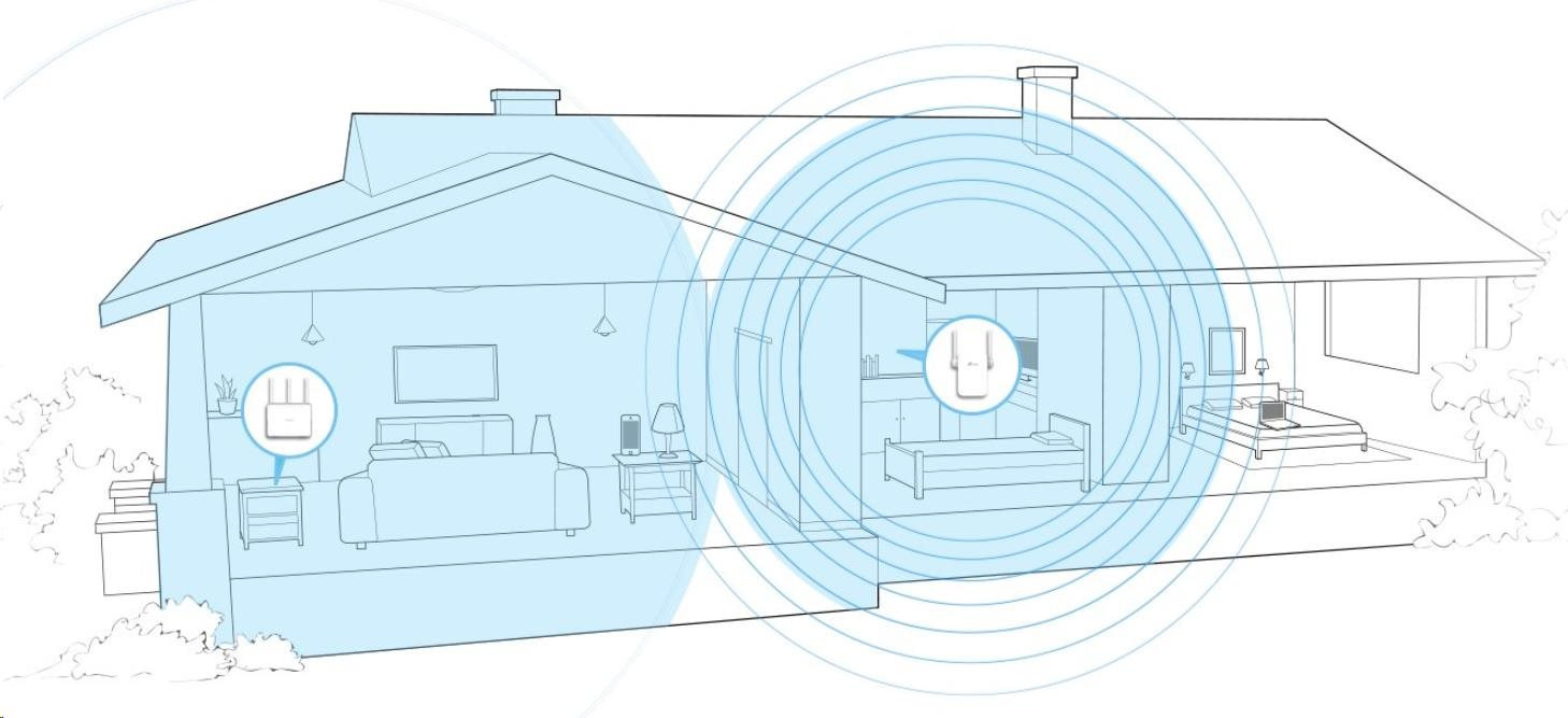 Extender RE305 vám umožní pripojiť viac zariadení naraz vďaka tomu, že pracuje súčasne v pásmach 2,4 GHz s rýchlosťou prenosu 300 Mb/s a 5 GHz, kde rýchlosť prenosu dát dosahuje až 867 Mb/s. Na bežnú prácu s e-mailami a prehliadanie webu používajte pásmo 2,4 GHz a pásmo 5 GHz využívajte na hranie hier a streaming videa v HD rozlíšení.