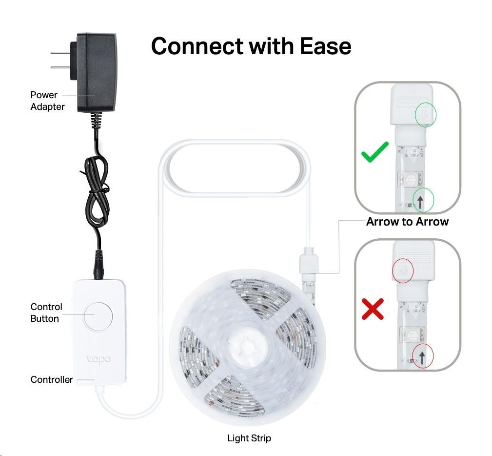 • Pripojenie podľa vašich predstáv – môžete ho používať s chytrým asistentom, hubom alebo ho pripojiť priamo k aplikácii Tapo. Ovládajte svetelný pásik spôsobom, ktorý vám vyhovuje.