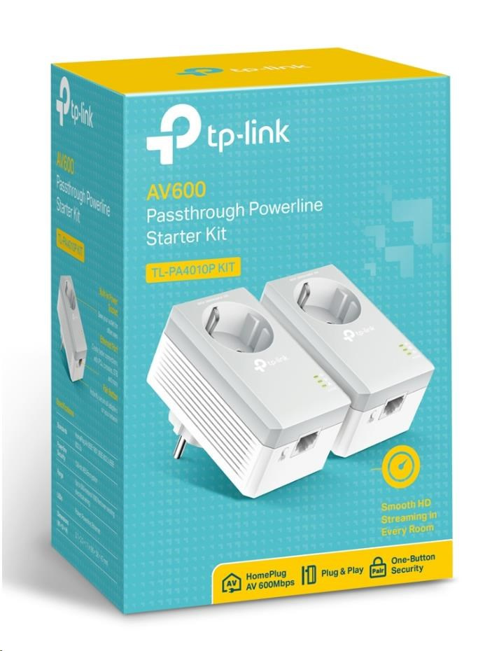 TL-PA4010P KIT, ktorý využíva pokročilú technológiu Home Plug AV, poskytuje stabilný a vysokorýchlostný prenos dát až do rýchlosti 600 Mb/s* pre dosah až do vzdialenosti 300 metrov od miesta, kde je umiestnená sieťová zásuvka. Žiadne rušenie na elektrických alebo elektronických zariadeniach. Streamujte v HD, hráte online a sťahujte veľké súbory bez prerušenia vďaka spoľahlivým napájacim linkám.