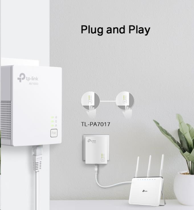 Využitím pokročilej technológie HomePlug AV2, TL-PA7017 KIT zabezpečuje stabilné a vysokorýchlostné káblové pripojenie a poskytuje dátové prenosy až 1 000 Mbps po elektrickej sieti s dosahom až 300 metrov. Streamujte v HD, hrajte online a sťahujte veľké súbory bez prerušenia vďaka spoľahlivej powerline technológii.
