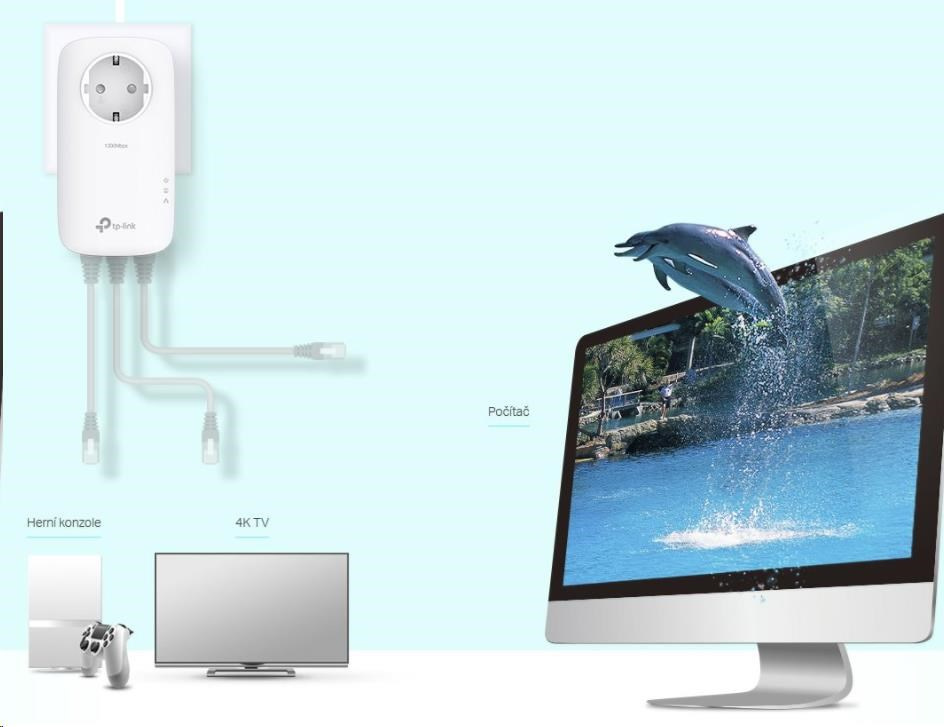 • Kompatibilné so zásuvkami štandardu HomePlug AV2: vysoká rýchlosť prenosu dát až 1300 Mb/s1 podporí všetko, čo potrebujete na internete robiť.