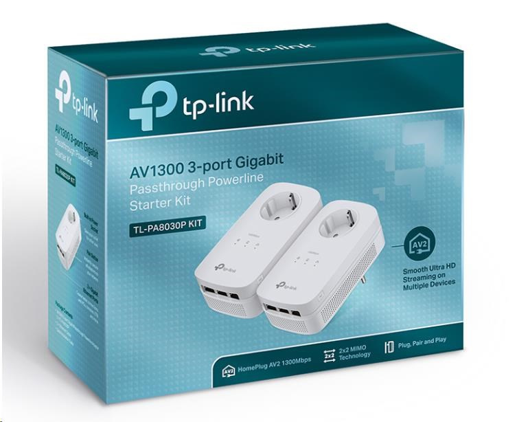 Popis TP-Link TL-PA8030PKIT průchozí powerline set (AV1300,3xGbE, HomePlug AV2)
