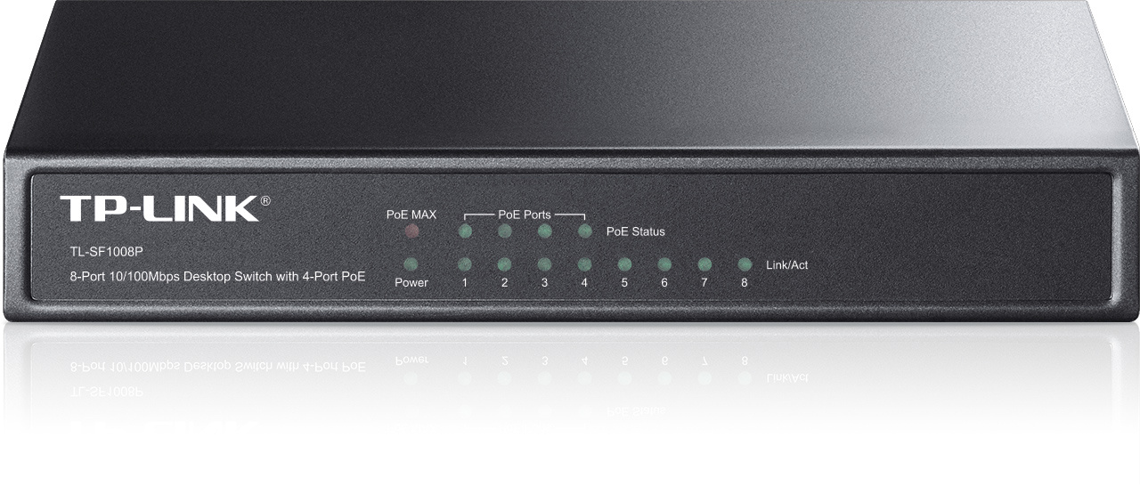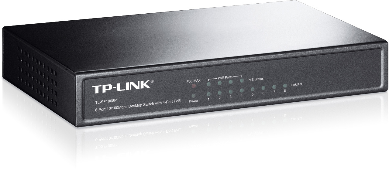 Popis TP-Link TL-SF1008P 8x10/100 (4xPOE) 66W Desktop kovový CCTV Switch