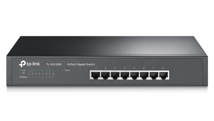 TL-SX1008 - 8-Portový 10G Desktop/Rackmount Switch FUNKCE - 8x 10 Gbps portů: 8× 10 gigabitové porty odemykají nejvyšší výkon šířky pásma 10G / Multi-Gig šířka pásma poskytuje přepínací kapacitu až 160 Gb/s - Bleskově rychlé připojení: Poskytuje bleskové připojení k 10G NAS, serveru, 10G PCIe adaptéru / NIC, hernímu počítači, 2,5G / 5G / 10G WiFi 6 AP, 8K videu a dalším - Ideální pro různé scénáře: Postaveno pro bleskurychlé připojení v obchodních a domácích kancelářích, pracovních stanicích, LAN večírcích a domácí zábavě. - Provoz s nízkou hlučností: Inteligentní nastavení rychlosti ventilátoru zajišťuje minimální hluk, který při používání neodvádí pozornost - Plug and Play: Umožňuje snadné nasazení bez potřeby technika TECHNICKÉ VLASTNOSTI Rozhraní: 8x 1000Mbps/1G/2,5G/5G/10G Auto Negotiation/Auto MDI/MDI-X Switching kapacita: 160 Gbps Rychlost předávání paketů: 119 Mpps Tabulka MAC adres: 32K Paketová vyrovnávací paměť: 16 Mbit Jumbo frame: 10 KB Zdroj napětí: 100-240V/0,8A Max. spotřeba energie: 28,4W Rozměry: 294 × 180 × 44 mm Počet ventilátorů: 1x Instalace: Desktop / Rackmount Certifikace: CE, RoHS, FCC