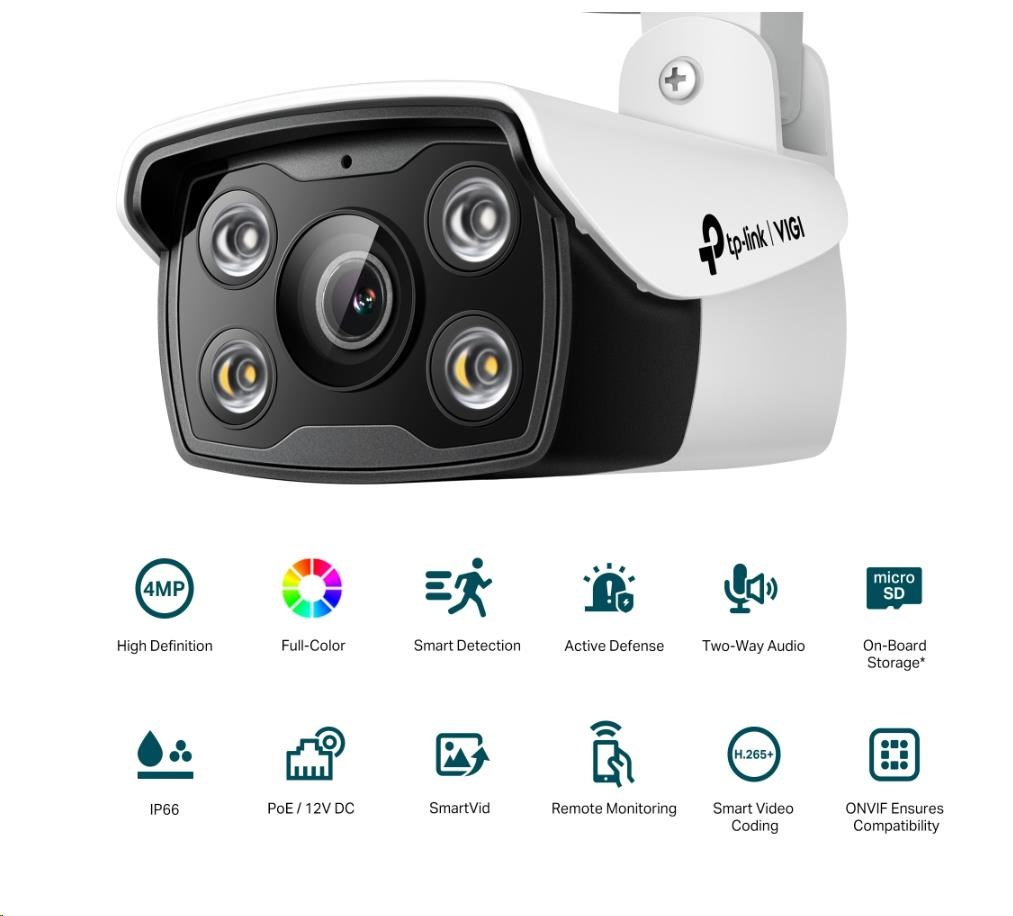 Popis TP-Link VIGI C340(4mm), 4MP, Bullet, IR 30m, Micro SD card