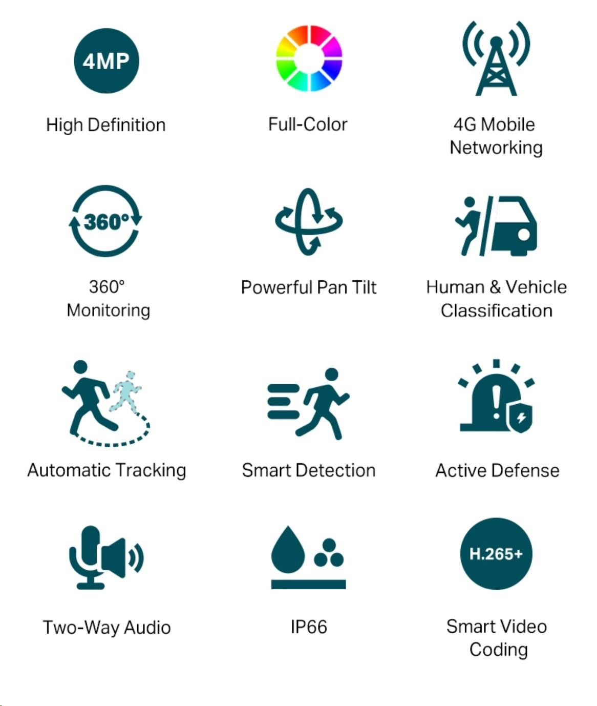 Pan: 0° až 348°, Tilt: 0° až 120°
