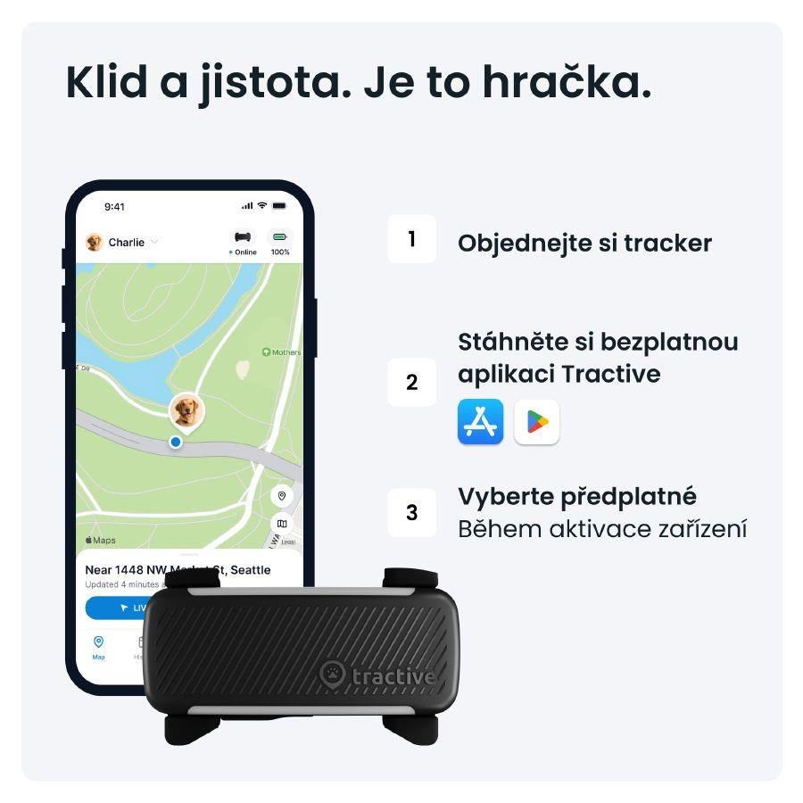 Zabezpečte svojmu psovi bezpečie a zdravie s Tractive DOG 6: výkonným univerzálnym GPS obojkom pre psov, ktorý vám v reálnom čase ukáže, kde presne pes je, sleduje jeho spánok a aktivitu a ponúka radu ďalších funkcií. GPS lokátor pre psov má v Českej republike a v ďalších viac ako 175 krajinách neobmedzený dosah vďaka integrovanému SIM karte, ktorá sa pripojí k akejkoľvek partnerskej sieti (je potrebná možnosť pripojenia k mobilnej sieti). Vyberte si predplatné, ktoré pokrýva náklady. Môžete si zvoliť predplatné na mesiac, 1, 2 alebo 5 rokov už od 90 Kč / mesiac*.