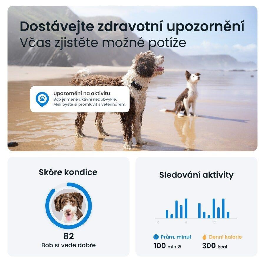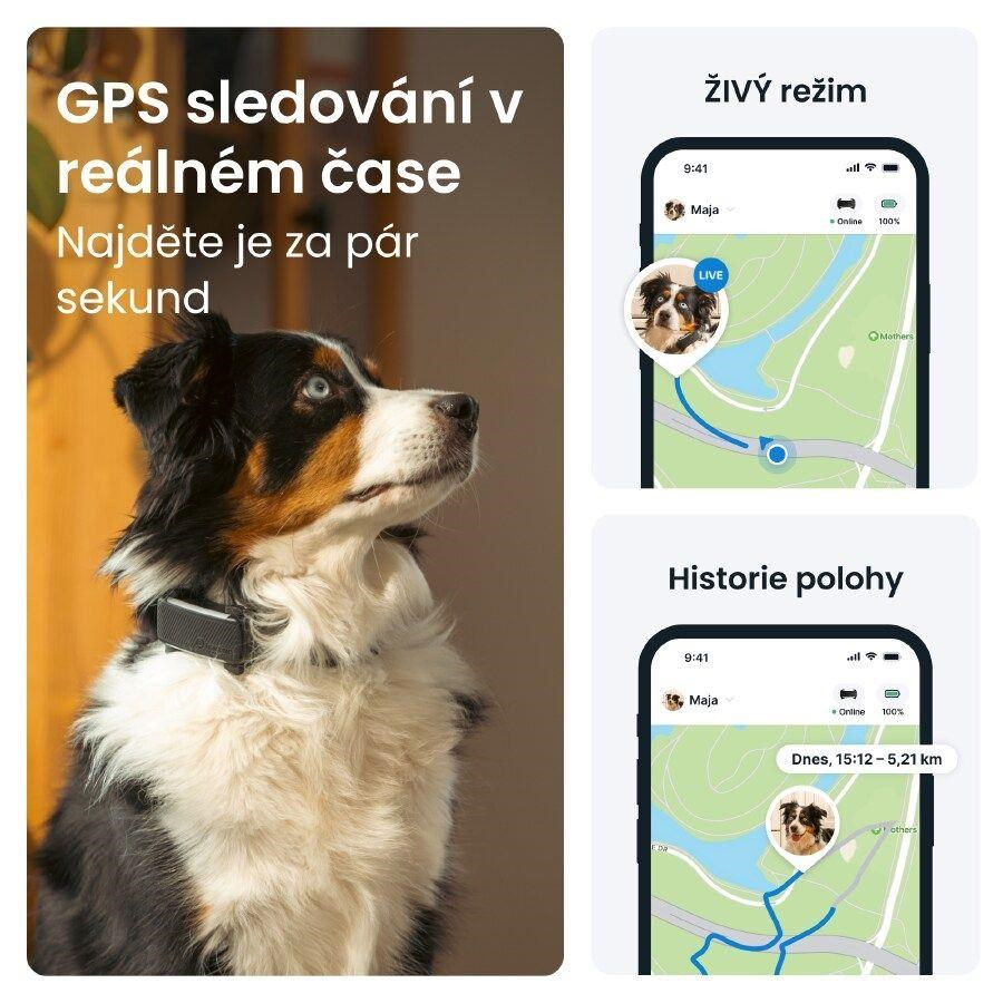 Živé GPS sledovanie a upozornenia na úteky Zdravotné upozornenia a sledovanie aktivity Novinka: sledovanie štekania Silnejšie svetlo a zvuk 100% vodotesný GPS tracker pre psov funguje s aplikáciou, ktorá je dostupná pre systémy iOS aj Android Batéria vydrží až 10 dní a plne nabije za necelé dve hodiny Nízka hmotnosť Pasuje na väčšinu psích obojkov a postrojov Kompatibilné s Android 9.0+, iOS 16+ Rozmery: 71 × 29 × 17 mm Hmotnosť: 39 g Farba: čierna Aktivácia GSM služieb