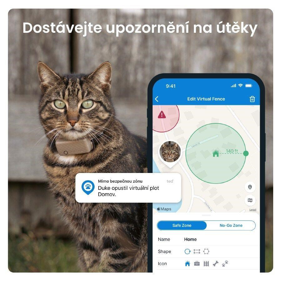 Pomocou funkcie Virtuálne ohrady GPS obojku pre mačky môžete nastaviť bezpečné a zakázané zóny a dostávať upozornenia, ak mačka do niektorej z nich vstúpi alebo ju opustí. Sledujte jej územie a objavte jej obľúbené miesta vďaka najnovšej technológii sledovania mačiek.