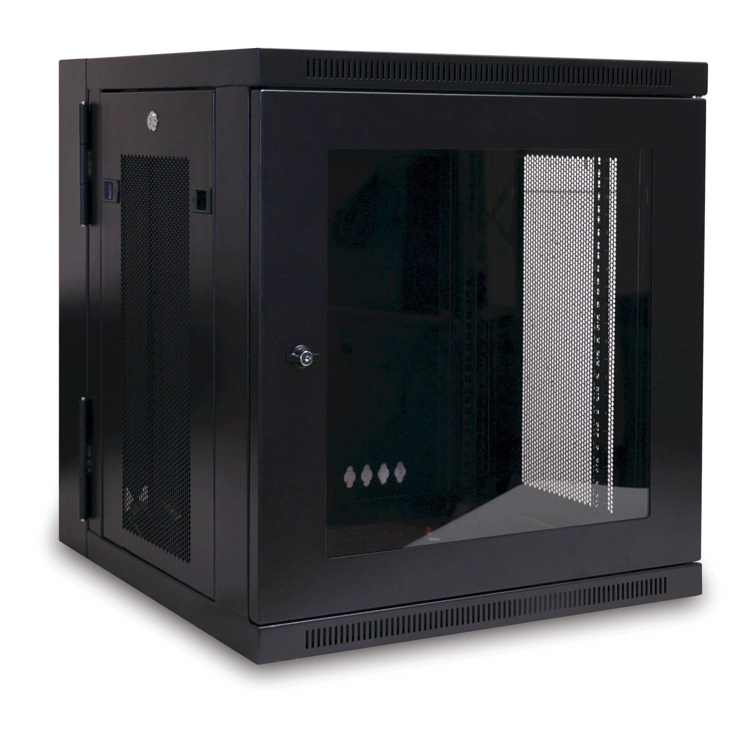 Skriňa SmartRack 12U, Š=600mm, Hl=550mm, hĺbka pre prepínače, presklené dvere, montáž na stenu