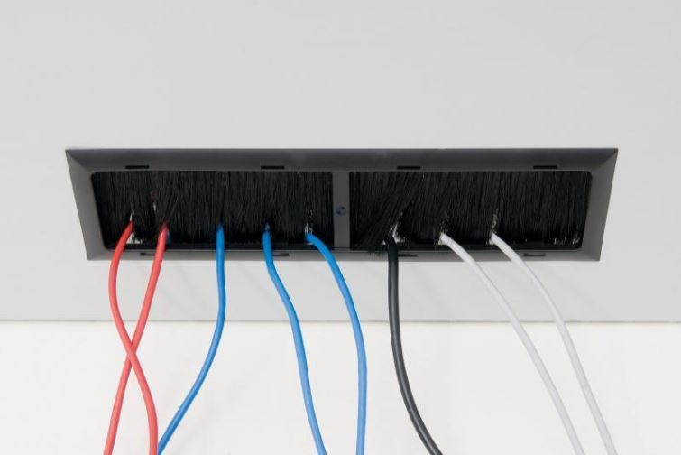 Káblové vstupy v zadnej časti rozvádzača sú zakryté vyrážacími záslepkami. Proti prenikaniu prachu je možné káble v otvore utesniť záslepkou s kefou. Na ochranu káblov pred poškodením slúži plastový rámček (obe sú súčasťou príslušenstva rozvádzača).