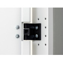 Vlastný systém pántov umožňuje otváranie dverí pod uhlom takmer 180°. Dvere je možné ľahko demontovať a preusporiadať na otváranie na opačnú stranu.