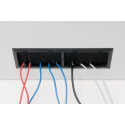 Káblové vstupy v zadnej časti rozvádzača sú zakryté vylamovacími záslepkami. Proti prenikaniu prachu je možné káble v otvoru utesniť záslepkou s kartáčom. Na ochranu káblov pred poškodením slúži plastový rámik (obe sú súčasťou príslušenstva rozvádzača).