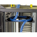 držiak je možné inštalovať vertikálne (10U) na 19" vertikálne lišty (zvyčajne na zadnej strane racku) alebo otočením držiakov horizontálne medzi vertikály ako klasickú policu. Podporné hroty namontované okolo centrálneho otvoru zabezpečujú polomer ohybu uložených káblov a zabraňujú ich poškodeniu.