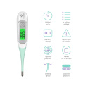 Flexibilná špička teplomeru je šetrná ku pokožke, meranie teda dobre znášajú aj najmenšie bábätká.