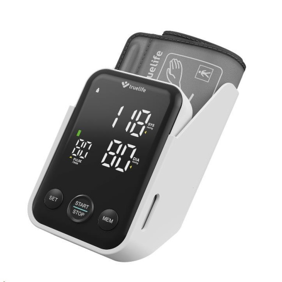 Tlakomer TrueLife Pulse B-Vision je bez pochyby jedinečný svojim dizajnom, o čom svedčí aj prestížne ocenenie Design Award. LED displej, ktorý slúži k zobrazeniu nameraných hodnôt je dostatočne veľký a vďaka čierno-bielemu kontrastnému prevedeniu aj veľmi prehľadný. Súčasťou balenia je praktický stojan, do ktorého jednoducho uložíte tlakomer aj manžetu.