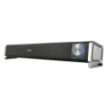 Stylový horizontální reproduktor navržený tak, aby jej bylo možné ideálně umístit pod jakýkoliv počítačový monitor. * Špičkový výkon 12 W (6 W RMS) * Bohatý stereo zvuk z kompaktního reproduktoru, který lze umístit pod jakýkoliv počítačový monitor. * Velké podsvícené tlačítko ovládání hlasitosti * Konektory na sluchátka a mikrofon umístěné pohodlně na přední straně * Napájení z USB – není nutné zapojovat do el. zásuvky