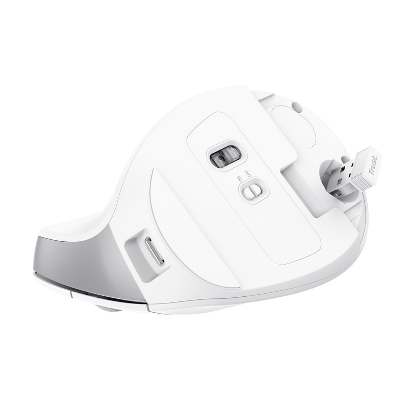 Popis Trust Bayo II/Vertikálna/Optická/Pre pravákov/2 400 DPI/Bezdrôtová USB/Biela