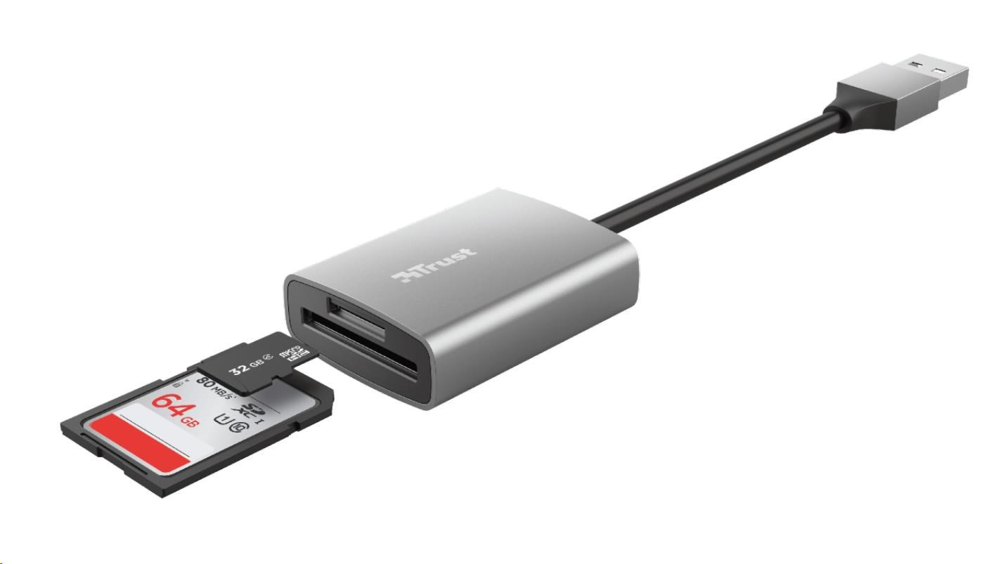 Kompaktná hliníková čítačka kariet so štandardným konektorom USB na použitie s kartami (micro) SD