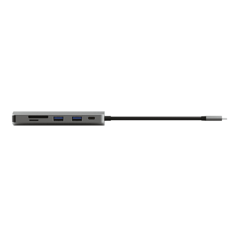 Klíčové vlastnosti *Přidejte do svého notebooku nebo tabletu další porty HDMI, síť, čtečku karet, USB a USB-C pomocí jediného portu USB-C *Připojte monitor nebo televizi přes port HDMI *Obraz v ultravysokém rozlišení v bohatých barvách díky HDR a HDMI 1.4 (4k30Hz) *2x USB porty pro příslušenství, jako je klávesnice, myš a externí disky *Podporuje rychlé datové přenosy (5 Gbps) *Nabijte svůj MacBook nebo jiné notebooky přes nabíjecí port USB-C (až 100 W) *Síťový port s podporou Gigabit Ethernet pro spolehlivé a stabilní připojení k internetu *Čtečka karet se sloty pro karty SD i micro SD *Odolné a stylové hliníkové pouzdro *Tenký a kompaktní, snadno přenosný při cestování *Funguje na každém notebooku, MacBooku a tabletu s portem USB-C