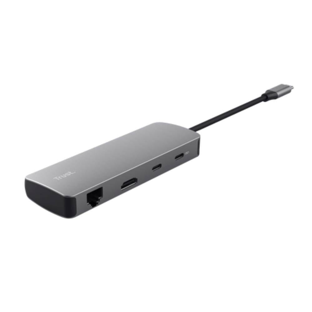 Štýlový hliníkový multiportový adaptér na pridanie portov HDMI, sieť, čítačky kariet, USB-C a USB k notebooku pomocou jedného pripojenia USB-C.