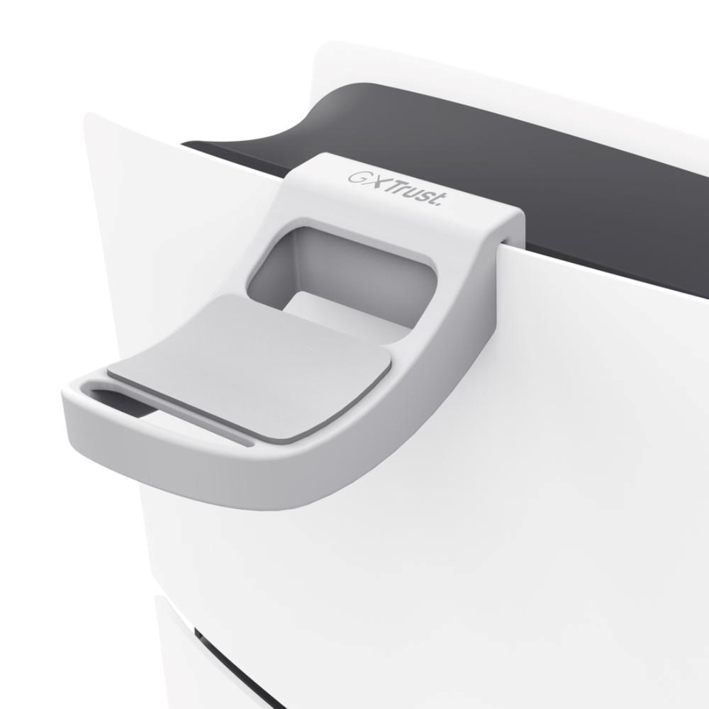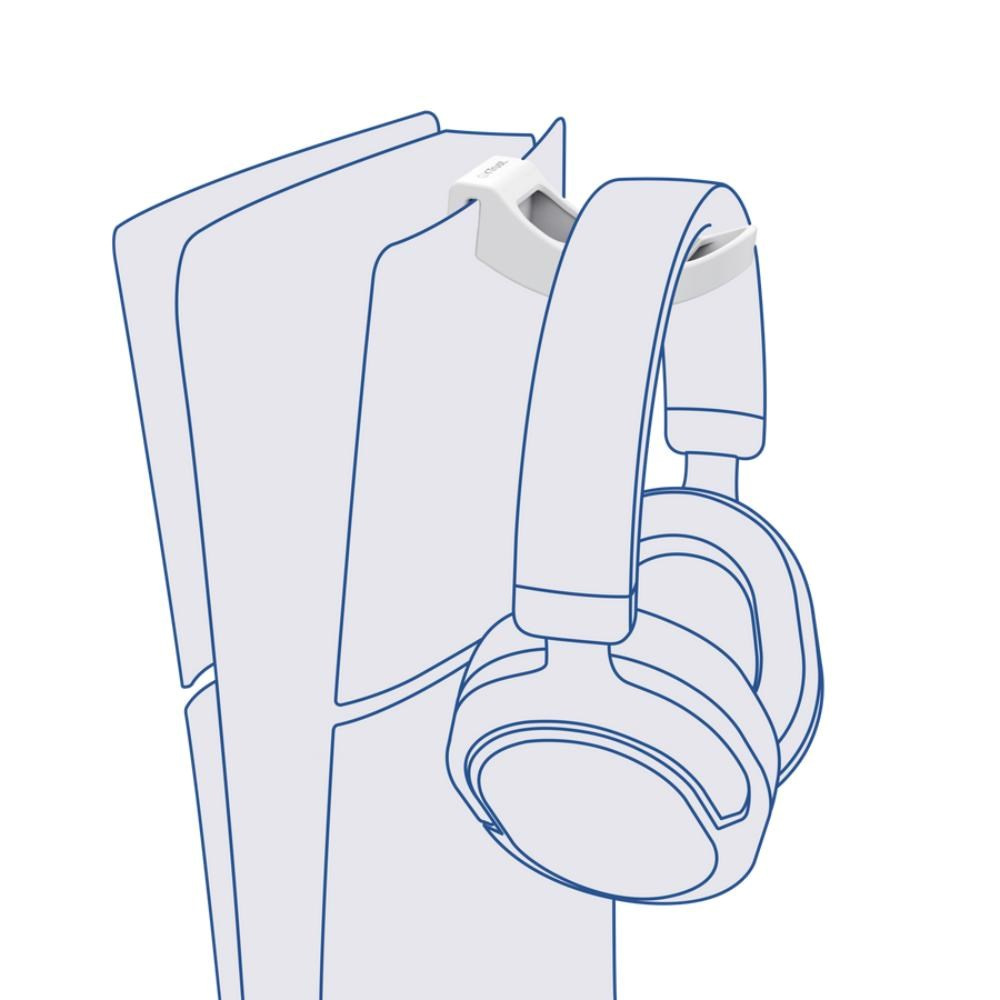 S týmto držiakom na slúchadlá PS5™ budete mať slúchadlá v bezpečí a pri ruke. Jednoducho sa používa a bezpečne sa pripevňuje na vrchnú časť akéhokoľvek konzoly PS5™, zatiaľ čo silikónová vložka zabraňuje poškriabaniu. Tento robustný a štýlový hák je dokonalým riešením pre úsporu miesta v akomkoľvek zariadení – to je to, čomu hovoríme PlayStation® perfect!