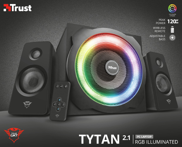 -120W špičkový výkon (60 W RMS) -Pro PC, notebook, televizi, smartphone a tablet -Dřevěný subwoofer pro bohatý a výkonný zvuk -Přednastavené světelné režimy: 7 barev synchronizovaných na basu, RGB dýchání, rotační RGB, synchronizované RGB -Včetně bezdrátového dálkového ovladače pro ovládání napájení, hlasitosti, basů a světel -Inteligentní řízení spotřeby: při nepoužívání se přepne do pohotovostního režimu