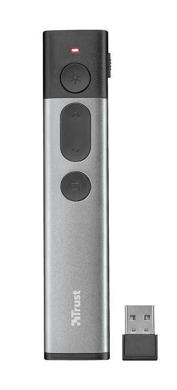 S prezenterem Kazun Aluminium Wireless Laser Presenter je prezentace velmi snadná. Tím, že máte svou prezentaci plně pod kontrolou, se můžete zaměřit na svůj příběh a publikum. Silný a ultratenký design hliníkového těla se pohodlně drží ve vaší ruce a zajišťuje, že si můžete s sebou vzít prezenter kamkoliv. Kazun Presenter obsahuje čtyři funkce aplikace PowerPoint: prezentaci můžete snadno spustit a zastavit, přejít na následující a předchozí snímek nebo přejít na černou obrazovku. Červený laserový ukazatel může být použit k zdůraznění důležitých aspektů vaší prezentace, což zajistí, že vaše publikum přesně ví, o čem mluvíte. *Moderní, ultratenký design pro snadnou přepravu *Silné a elegantní hliníkové tělo, které se pohodlně drží v ruce *4 funkce aplikace PowerPoint (další snímek, předchozí snímek, start/stop, černá obrazovka) *Vestavěná dobíjecí baterie *Mimořádně dlouhý bezdrátový dosah až 30 m *USB micro-receiver, který lze uložit do prezenteru *Také kompatibilní s Mac (Office for Mac 2011 / Mac-Keynote 2014 a novější)