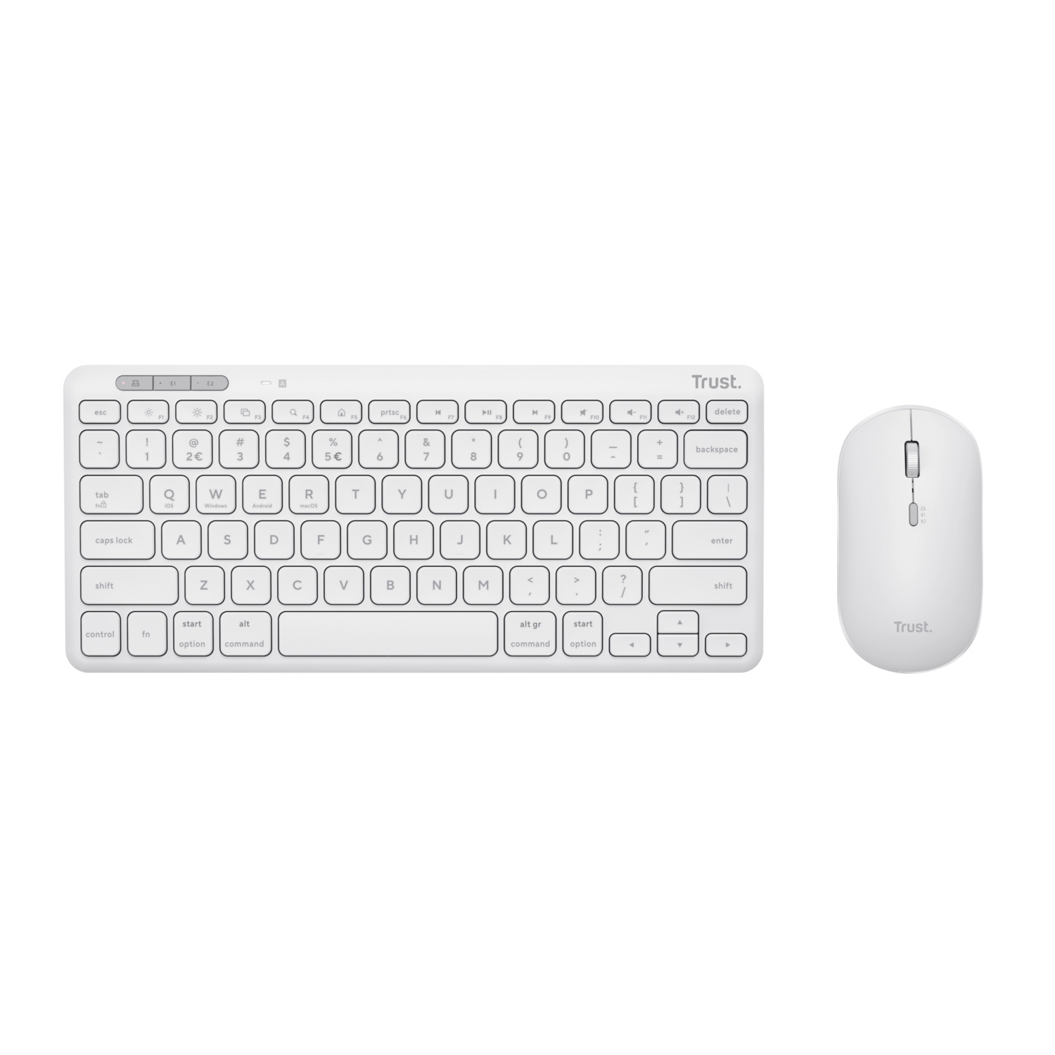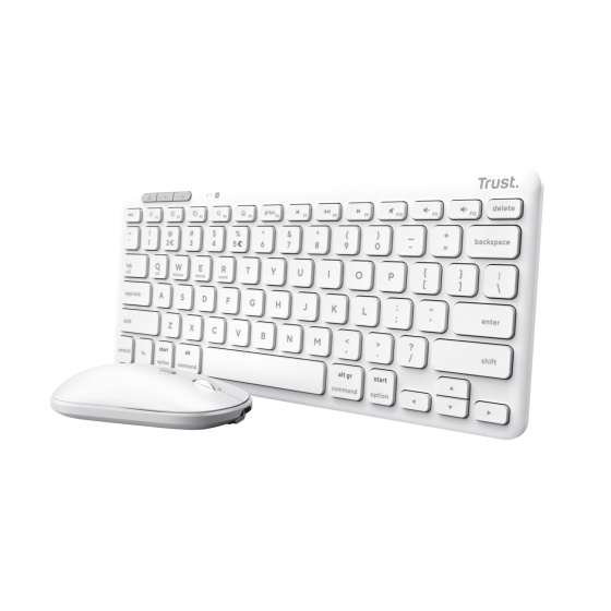 TRUST Lyra bezdrátový set klávesnice a myši pro více zařízení - bílá Miluješ multitasking? Stejně tak i Lyra – s možností připojení až k třem zařízením pomocí USB přijímače a 2x Bluetooth můžeš snadno přepínat mezi prací na svém telefonu, tabletu a počítači pomocí tří dedikovaných tlačítek.