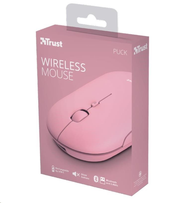 Popis TRUST myš PUCK, bezdrôtová, USB, ružová