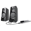 - Štýlové reproduktory s bohatým zvukom a vysokým maximálnym výkonom 36 W (18 W RMS) - Ľahko prístupné ovládanie hlasitosti a basov, konektor pre slúchadlá na prednej strane - Vstupný konektor pre iPod, iPhone, prehrávač MP3 atď. - Inteligentná správa napájania: po určitej dobe nečinnosti automaticky prejde do pohotovostného režimu Obsah balenia - 2 reproduktory s pripojenými káblami - Používateľská príručka Systémové požiadavky - 3.5 mm audio prípojka - Napájacia prípojka na stene ..