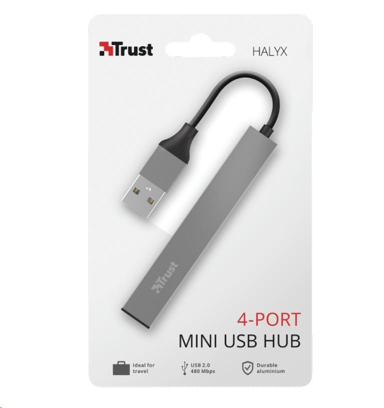 Popis TRUST HALYX Hub, hliníkový 4-portový mini USB hub, 10 cm
