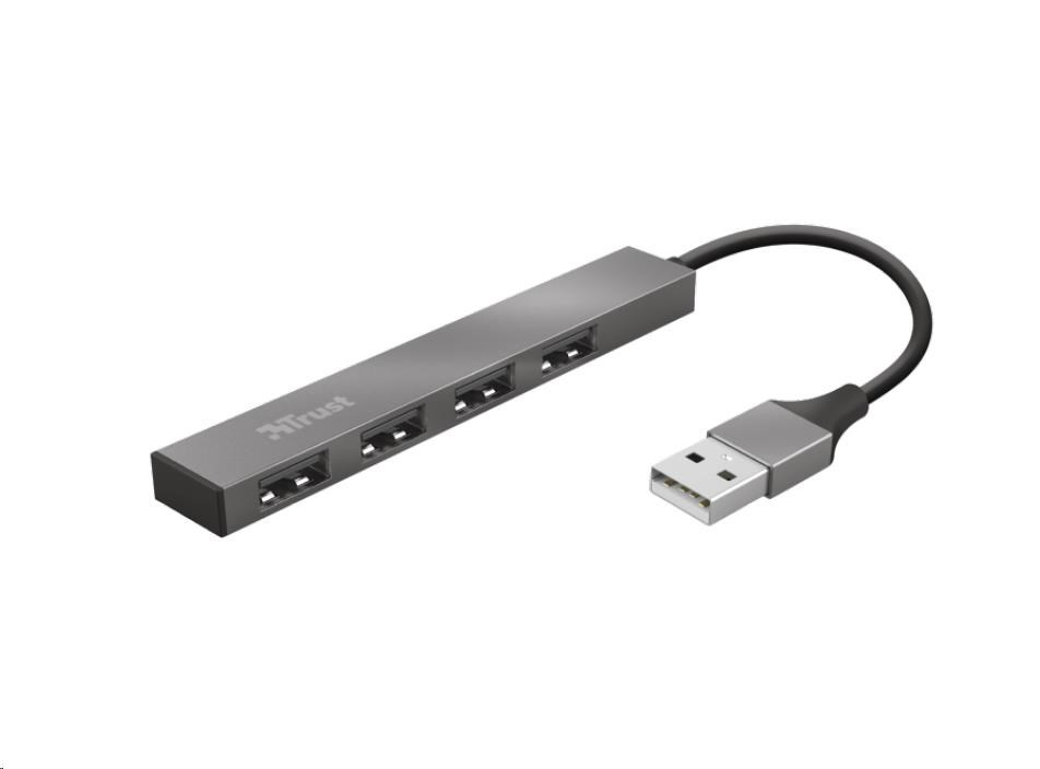 TRUST HALYX Hub, hliníkový 4-portový mini USB hub, 10 cm