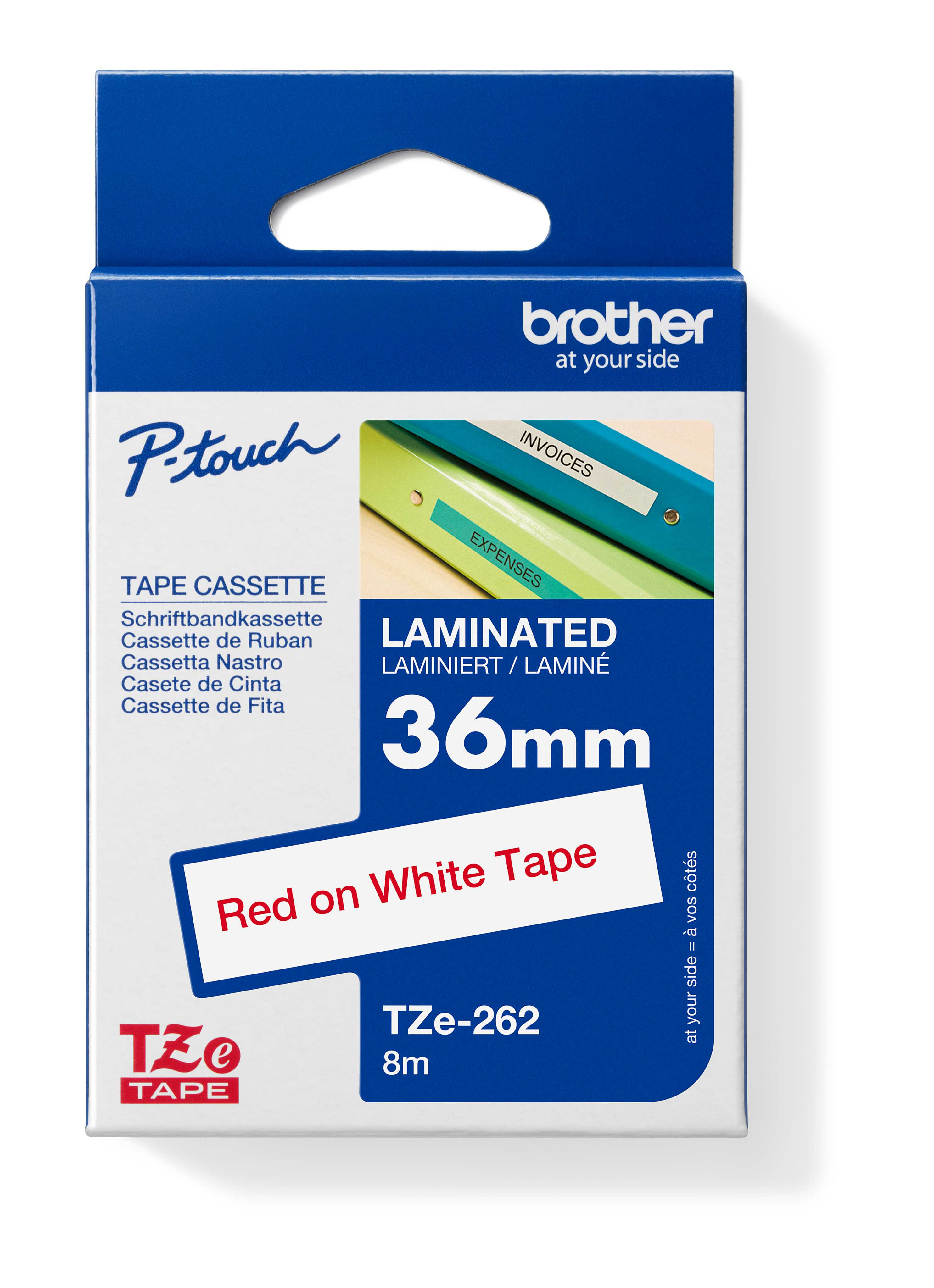 Originální kazeta s laminovanou páskou TZe-262 kompatibilní s širokou řadou tiskáren Brother P-touch je zvláště všestranná díky své snadno čitelné červené a bílé barvě - ideální pro domácnost, kancelář a další pracoviště.