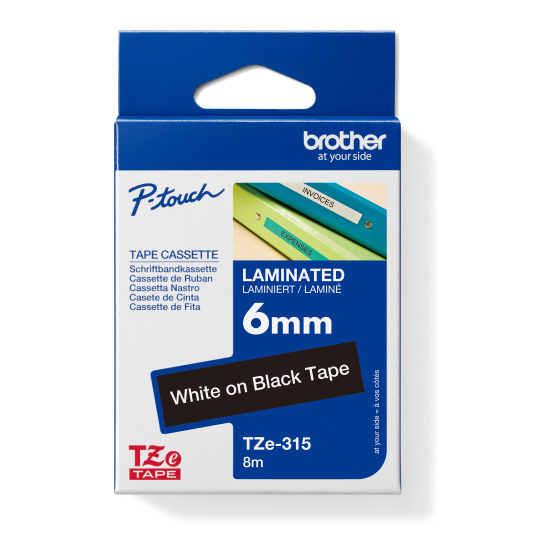 Originální kazeta s laminovanou páskou TZe-315 kompatibilní s širokou řadou tiskáren Brother P-touch je zvláště všestranná díky své snadno čitelné bílé a černé barvě - ideální pro domácnost, kancelář a další pracoviště.