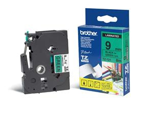 Originální kazeta s páskou Brother TZe-721 - černý tisk na zelené, šířka 9 mm